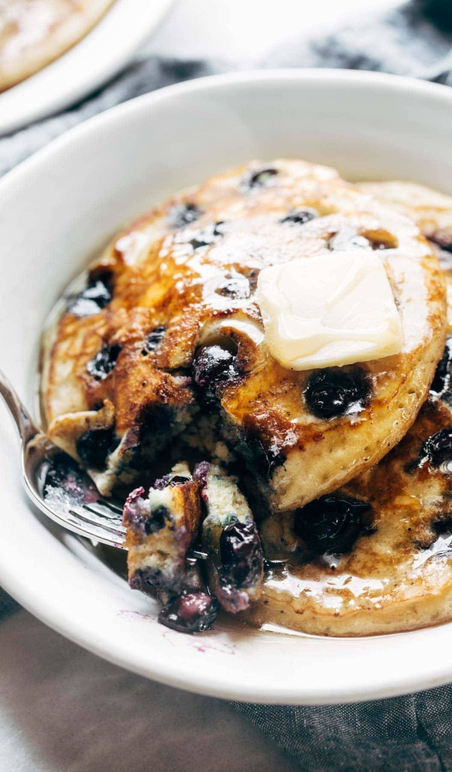Best pancakes I’ve ever made! Super basic, thick and fluffy blueberry pancakes – melt in your mouth, golden brown, and bursting with blueberries.